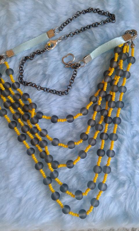 Дуже незвичайне намисто з намистин, стрічок і ланцюга.