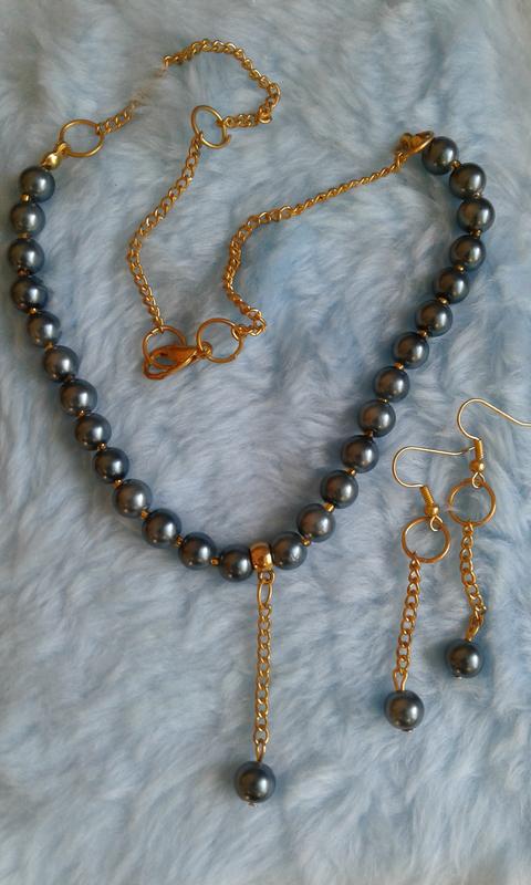 Лаконичное колье и серьги из бусин (керамика) и цепи.