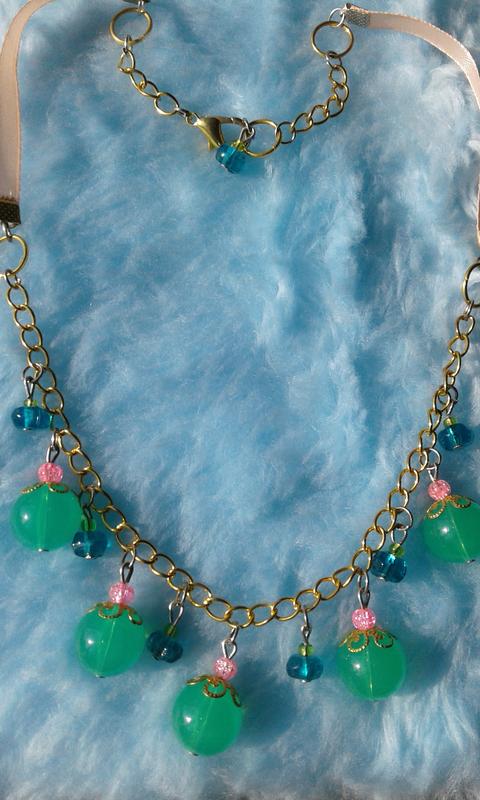 Яркое и необычное летнее ожерелье из бусин, ленты и цепочки.