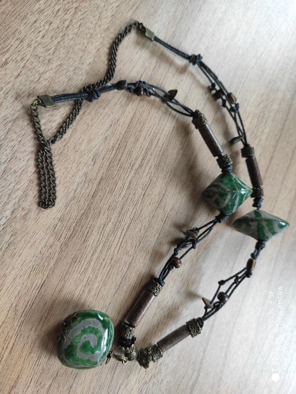 Стильне намисто ручної роботи литовського майстра.Кераміка і мідь.Довжина 72 див.