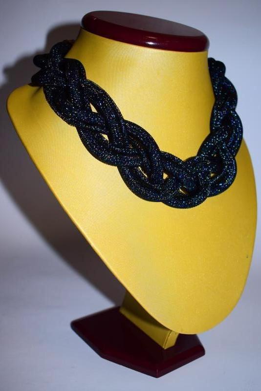 Масивне кольє-косичка, виготовлене з чорної сітки і бісеру різних відтінків. Гарно виблискує на сонці і при штучному світлі. Handmade!