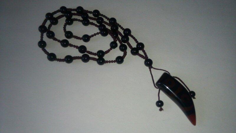 Ожерелье "Клык".стекло состояние отличное. длина 78 см. материал: нить, бусины черного цвета, клык ( стекло , цвет под янтарь.)