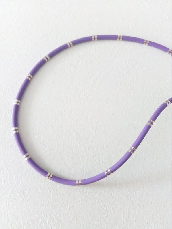 Фиолетовый каучук с серебряными вставками (серебро 925 пробы). Длина: 49, 50 см. Есть такие же браслеты в наличии. Все украшения с пробой и биркой. Абсолютно новые.