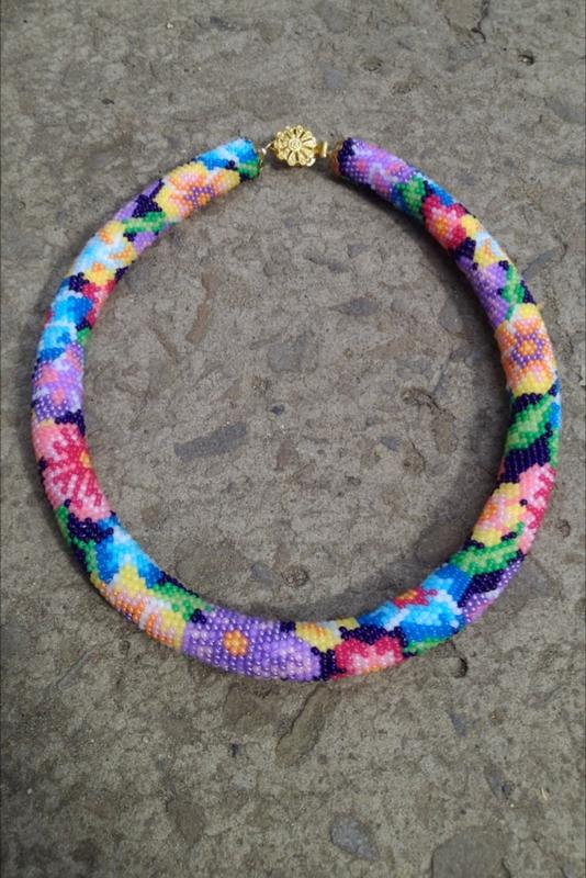 Плетений джгут з чеського бісеру. Товщина 20 намистинок в діаметрі, приблизно 1, 5 см. Довжина 47 см без застібок. Можна поставити ланцюжок - удлиннитель, щоб регулювати довжину.
