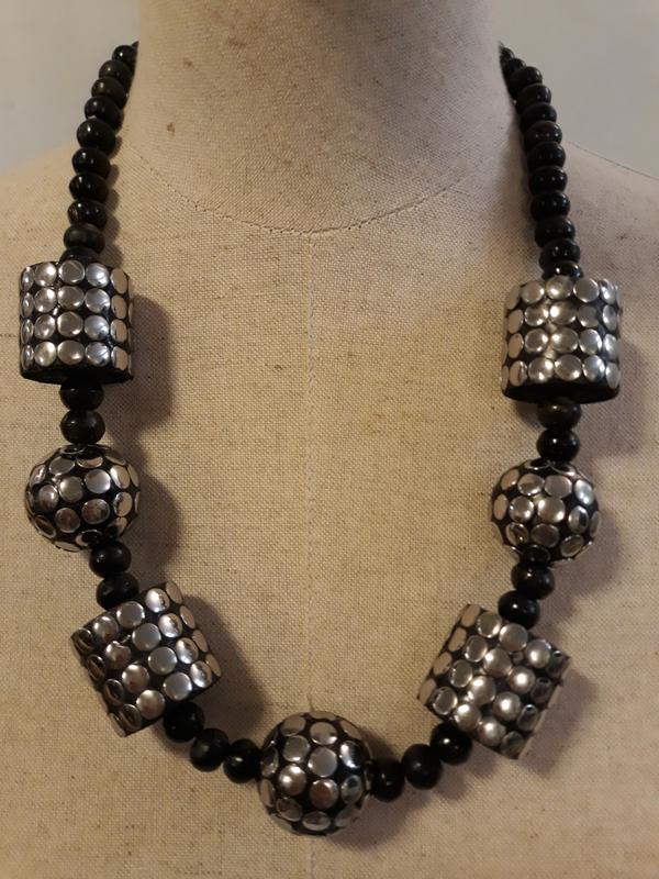 Ожерелье из дерева .Декорированное металлическими пайетками. Замечательное,стильное дополнение к вашему гардеробу. Не тяжелое...