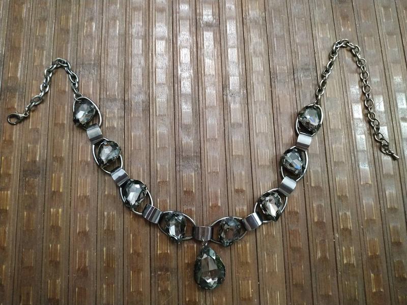 Стильное колье в темных цветах. Длина регулируется цепочкой. Абсолютно новое, из посылки. Скло+ метал.
