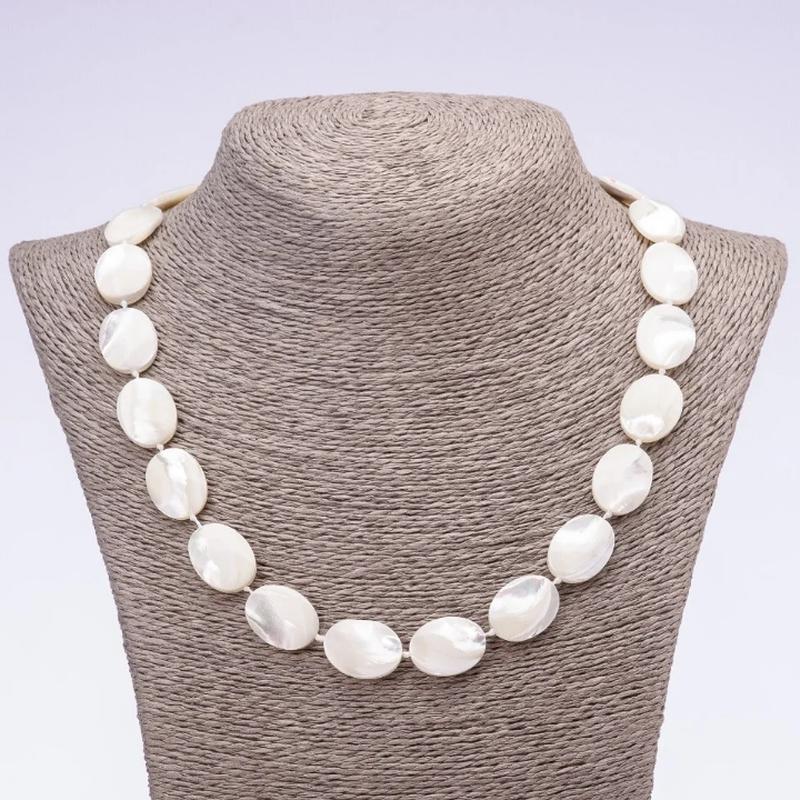 Бусы из натурального молочно белого Перламутра овал d-15х20мм L-48см