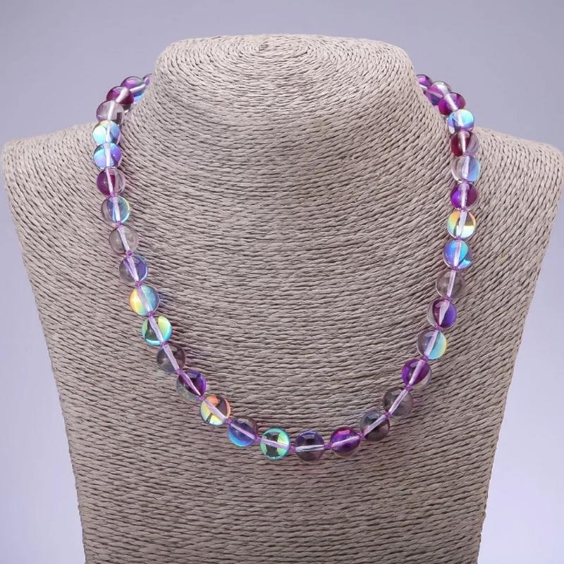 Бусы Опаловое стекло фиолетовое d-10 мм L-48см