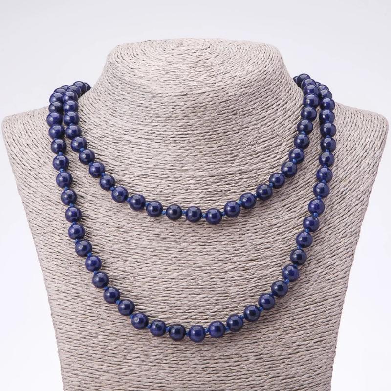 Бусы длинные из натурального камня Лазурит d-8мм L-120см