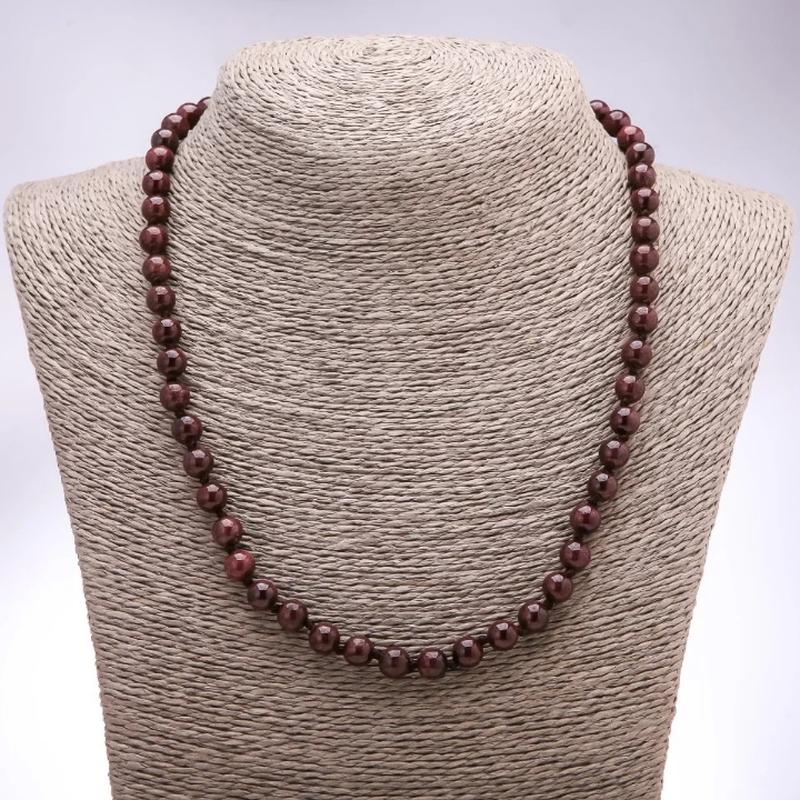 Бусы из натурального камня Гранат гладкий шарик d-7+-мм L-52+-см