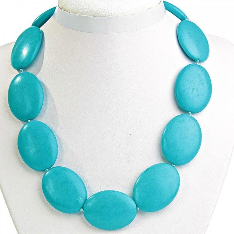 Бусы голубая Бирюза овал 30*40мм, длина 50см