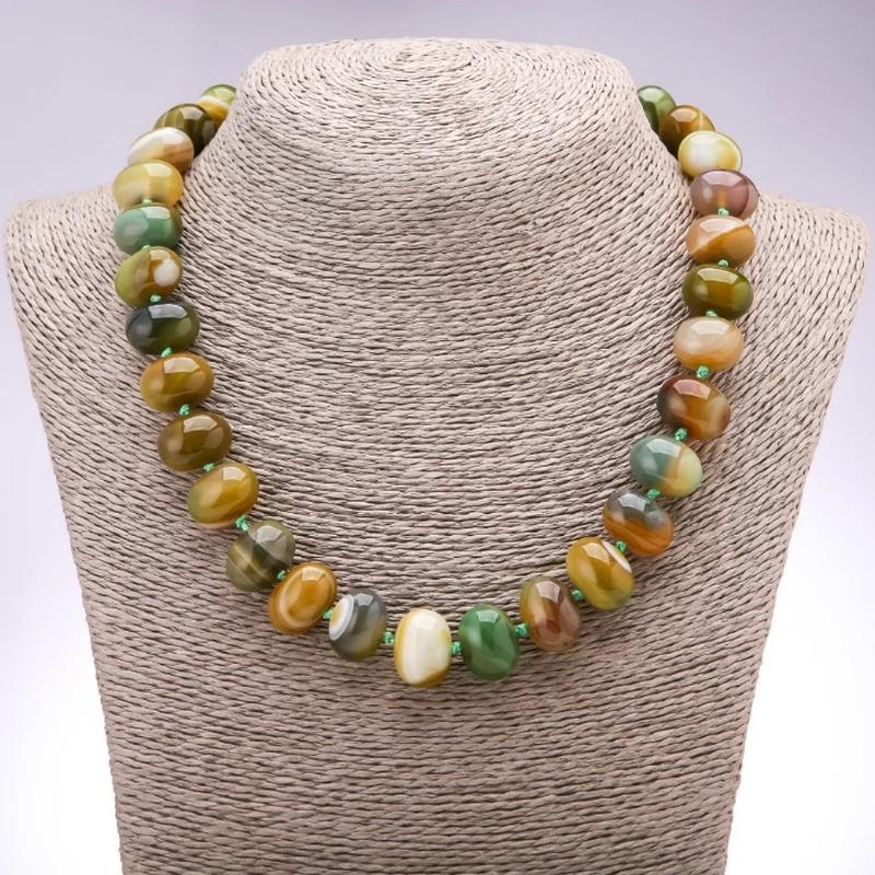 Бусы глазковый Агат оливковый d-16х12мм L-48см