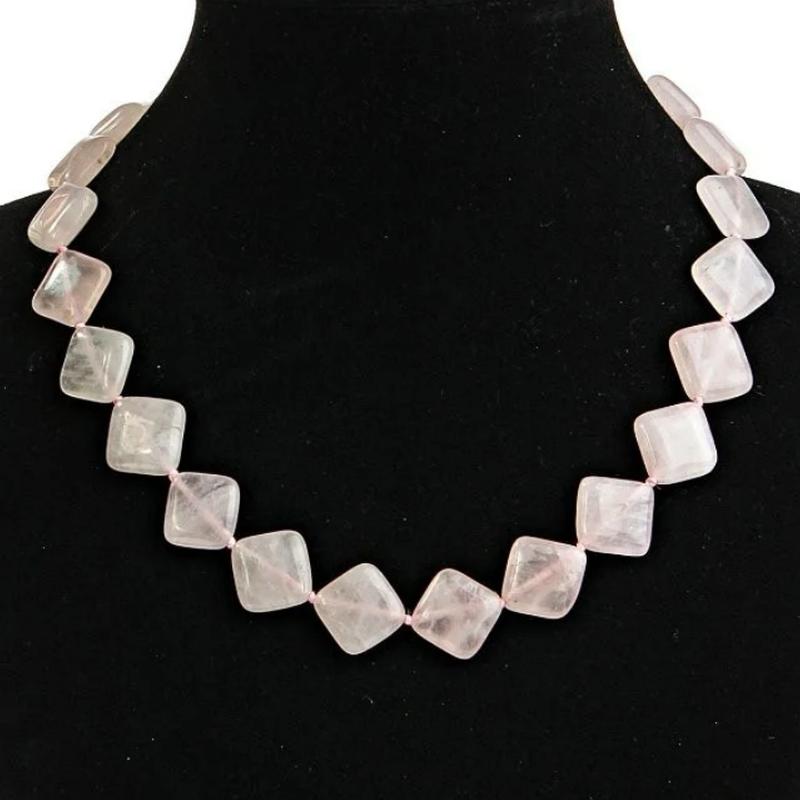 Намисто Рожевий Кварц 15*15мм, довжина 47см