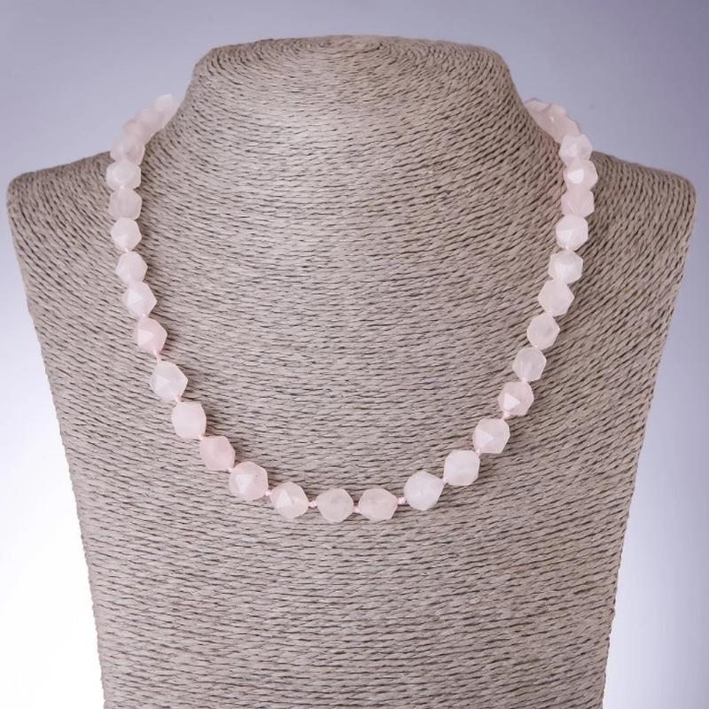 Бусы натуральный камень Розовый кварц d-8х10мм L-48см