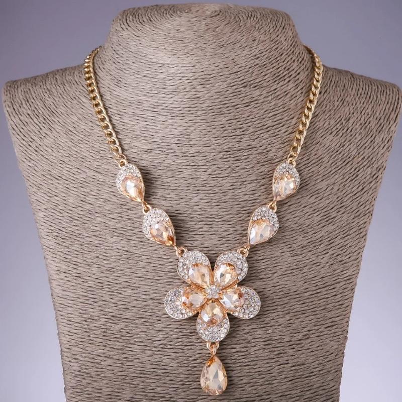 Колье "Цветок" с кристаллами цвет "шампань" L-42-50см