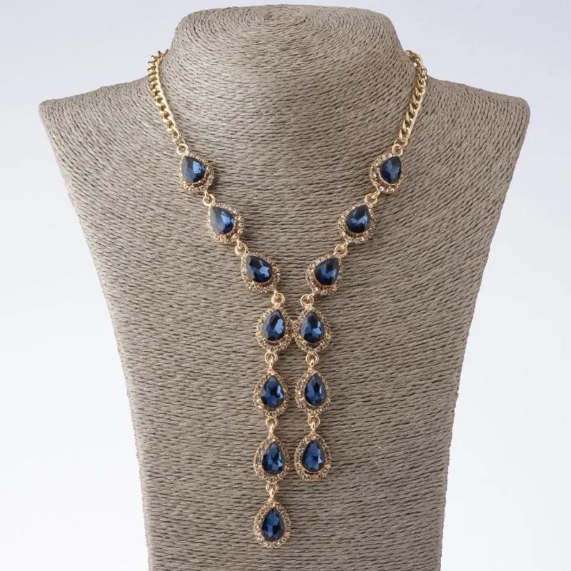 Колье на цепочках с синими кристаллами каплями L-45-50см