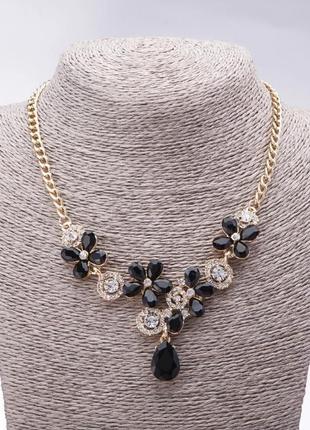 Колье вечернее с черными кристаллами L-42-49см