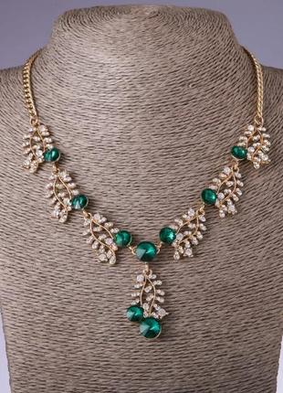Колье с зелеными кристаллами L-42-50см