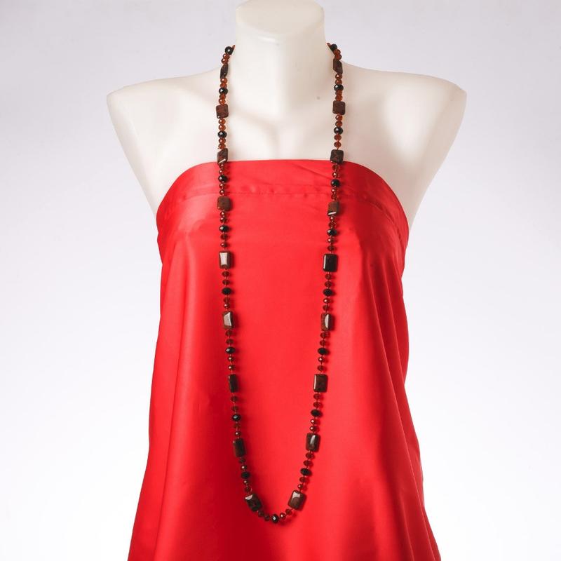 Бусы длинные натур камень Обсидиан, "чешский хрусталь" L- 120см
