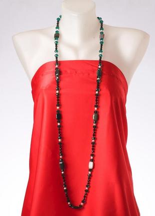 Довгі намиста натур камінь Моховий Агат, "чеський кришталь" L - 120см