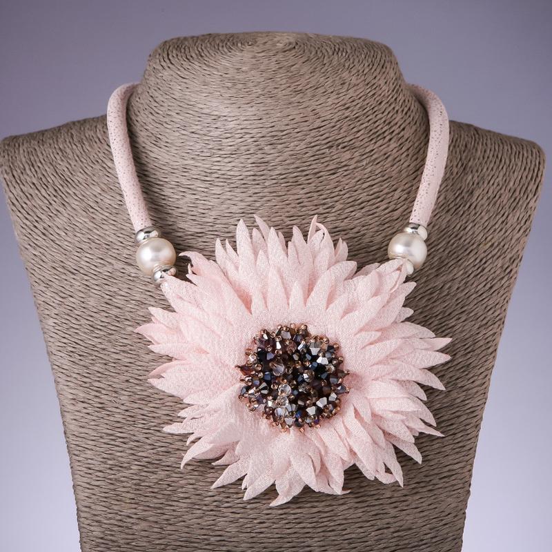 Колье на шнурах Хризантема розовая, фэшн стиль L-48-55см