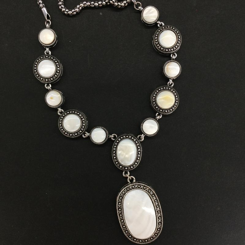 Колье с перламутром L-56+8см (подвески 7,5см)