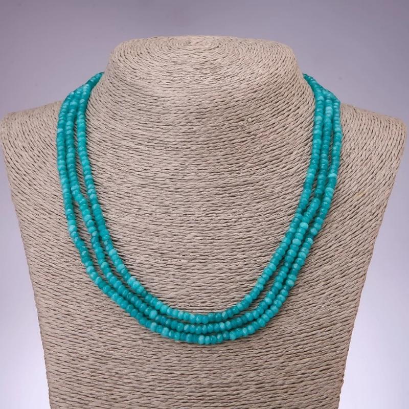 Бусы тонированный кварц имит. "Аквамарин" граненный рондель d-4х3мм L-45см