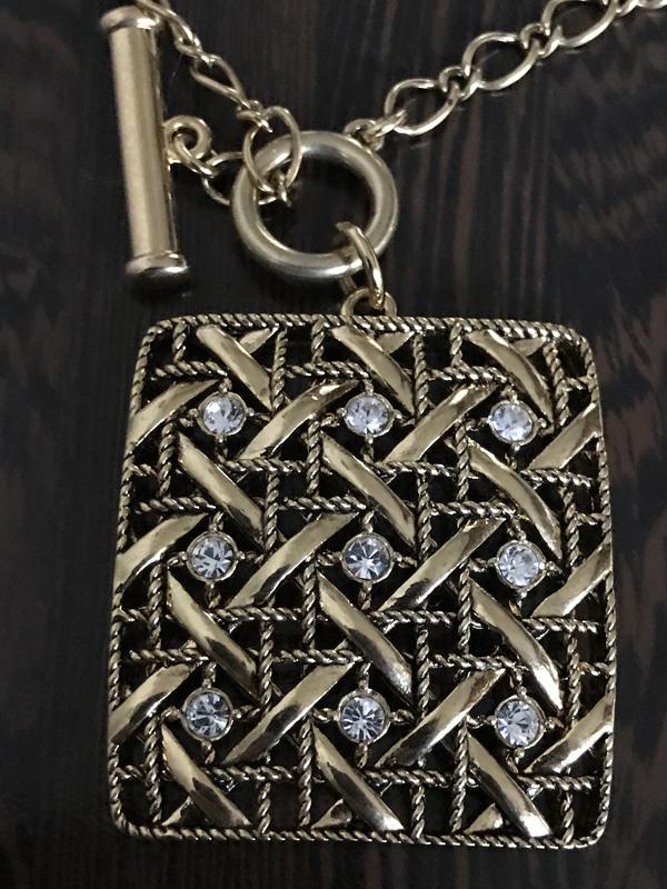 Florange кольє у вінтажному стилі довжина 46 см + 4 см підвіс, з ювелірного сплаву лимонного кольору з патиною, не темніє, начищати не потрібно, виглядає дуже стильно і дорого, застібка кільце і планочка, яка в нього входить і стає впоперек, дуже міцна розмір підвісу 4х4 см, 9 кристалів Сваровські, упакований в червоний оксамитовий мішечок і червону лакову коробочку