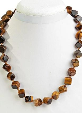 Намисто Тигрове Око кубик 10мм, довжина 48см