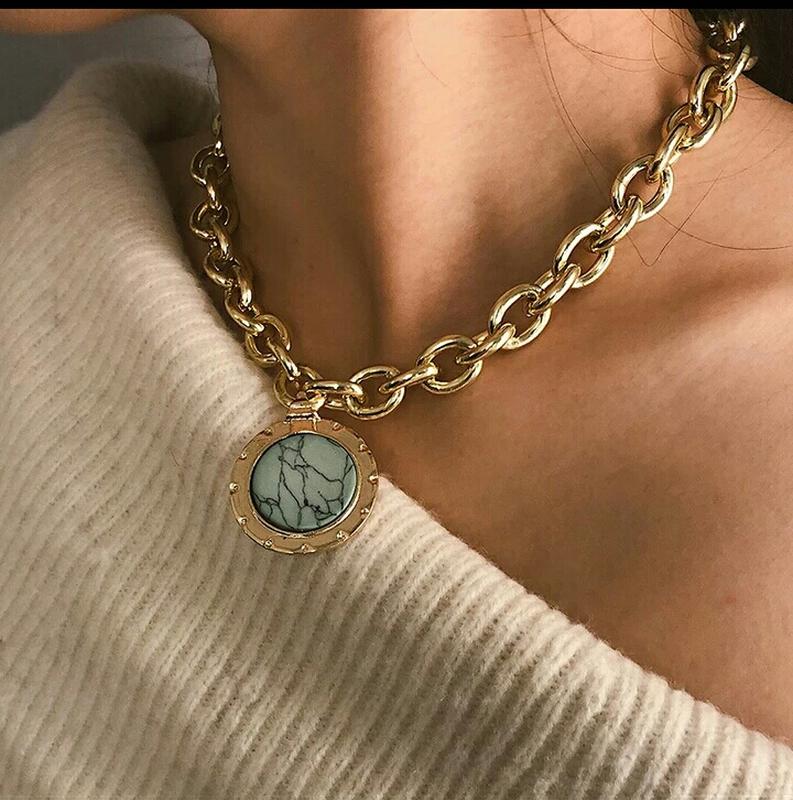 Изысканное колье чокер ожерелье крупные цепи c подвеской