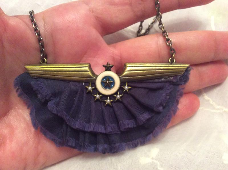 Ожерелье Accessorize - синяя ткань, золотая цепочка в старинном стиле, винтажный стиль ВВС, медаль 40-х годов «Крылья». В хорошем состоянии. Англия.длина 40+5смПожалуйста, внимательно посмотрите на все фотографии, поскольку они являются частью описания. Отправлю НП за счёт покупателя,после оплаты на карту ПБ.Комиссию банка оплачивает покупатель.Возврата нет.