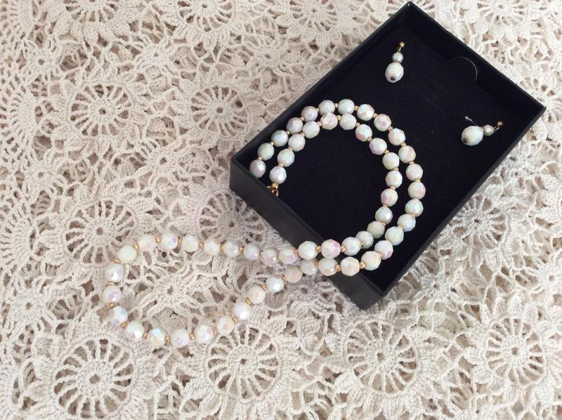 Ожерелье в золотом тоне из стеклянных бусин белого цвета с эффектом АБ+серьги -гвоздики. Длина ожерелья 54см.длина серьги 2см. Отправлю НП за счёт покупателя,после оплаты на карту ПБ.Комиссию банка оплачивает покупатель.Возврата и обмена нет.