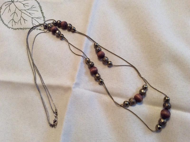 Ожерелье в золотом тоне в две цепочки бусины металл филигрань и дерево.Длина одной цепочки 90 см,другой 76см в раскрытом виде.70е США Отправлю НП, за счёт покупателя, после оплаты на карту ПБ.Комиссию банка оплачивает покупатель Обмена и возврата нет.