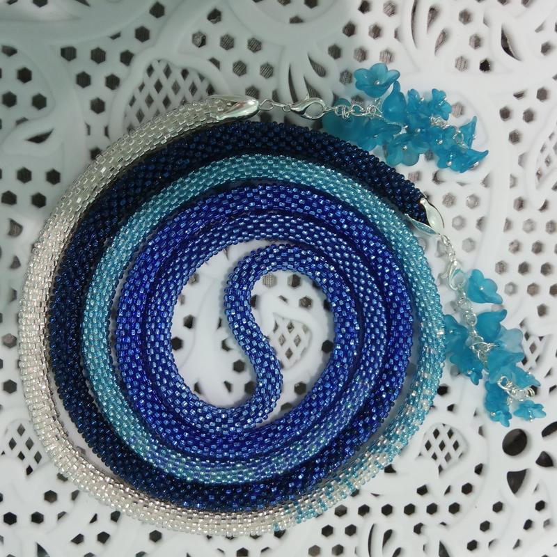 Симпатичний джгутик, який можна використовувати як прикрасу на шию в різних варіантах, або як пояс. Довжина джгута 140 см +2 кісточки ( на карабінах) по 6 см кожна.