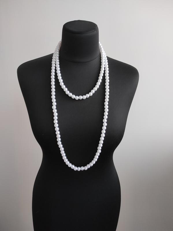 Ожерелье бусы 1,5 м под жемчуг - Гетсби, Чикаго, Мулен рух Материал - пластик Цвет- белый перламутр, айвори, черный Диаметр бусин - 9 мм Длина нитки - 150 см Без застежки
