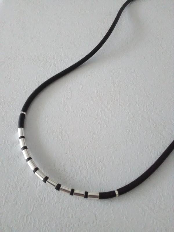 Каучук з срібними вставками (срібло 925 проби). Довжина 55 см. Вага 7,70 гр. Усі прикраси з пробою та биркою. Абсолютно нові.