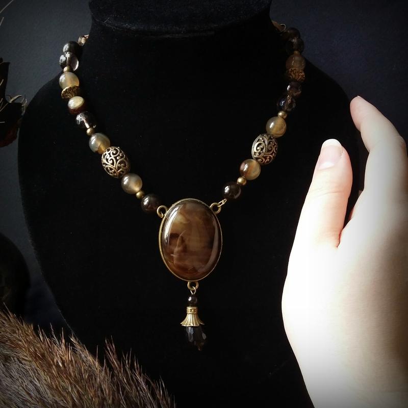 Коричневые бусы с агатом