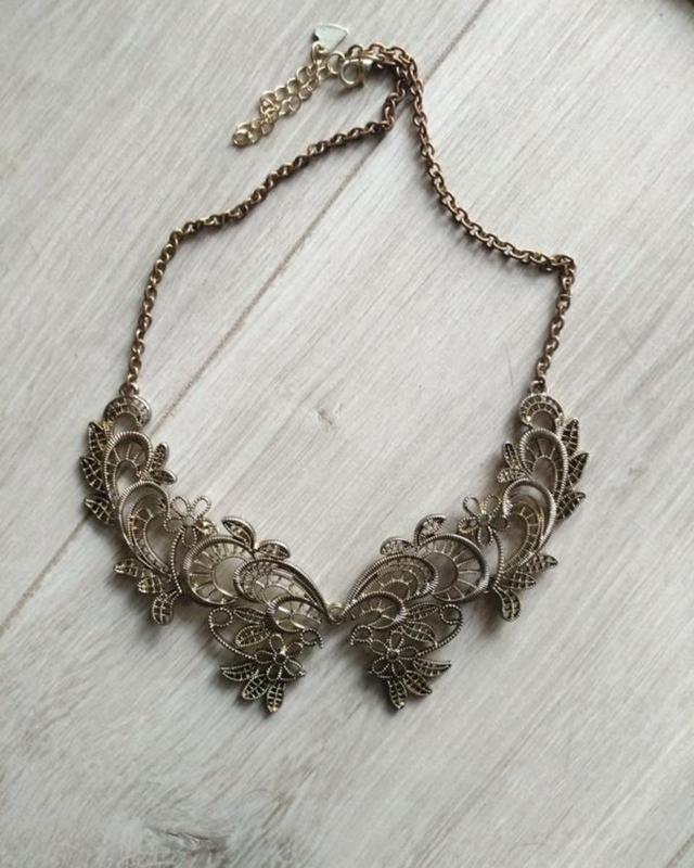 Стильное колье. Необычные узоры. Массивное. Имеет механизм подвижности. Надела один раз на примерку и все. Продаю за ненадобностью