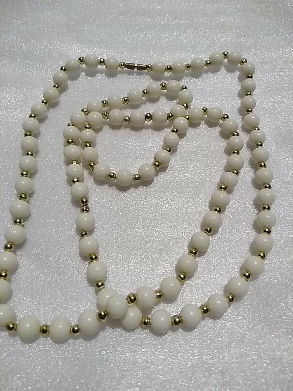 бусы из белых и золотистых бусин. длина 90 см.