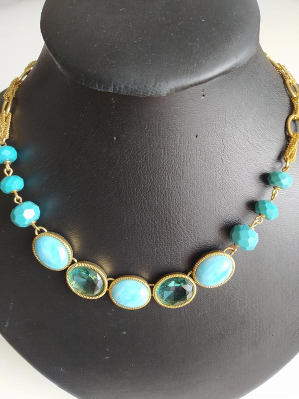 надзвичайно ніжне кольє з бірюзовими підвісками та скляними бусинами ім.нефрит