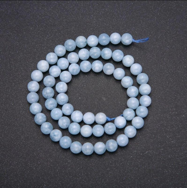 Бусины из натурального камня Аквамарин гладкий шарик d-6(+-)мм L-38см