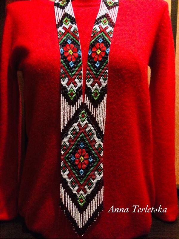 Оригінальний гердан вигитовлений з якісного чеського бісеру та міцної нитки. Довжина виробу 60см, ширина нижньої частини, 7,3 див. На замовлення 5 днів.