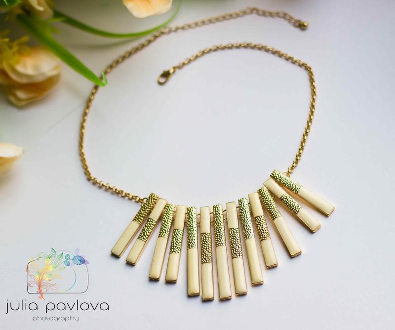 Колье с бежевыми вертикальными палочками, длина регулируется.