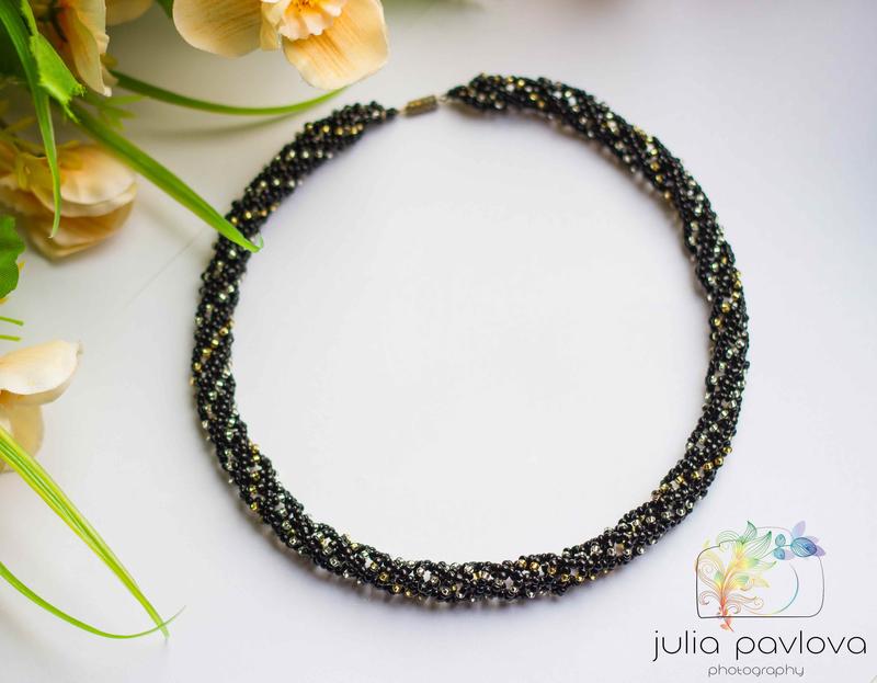 Колье из черного бисера, отлично смотрится под любой образ и цвет одежды