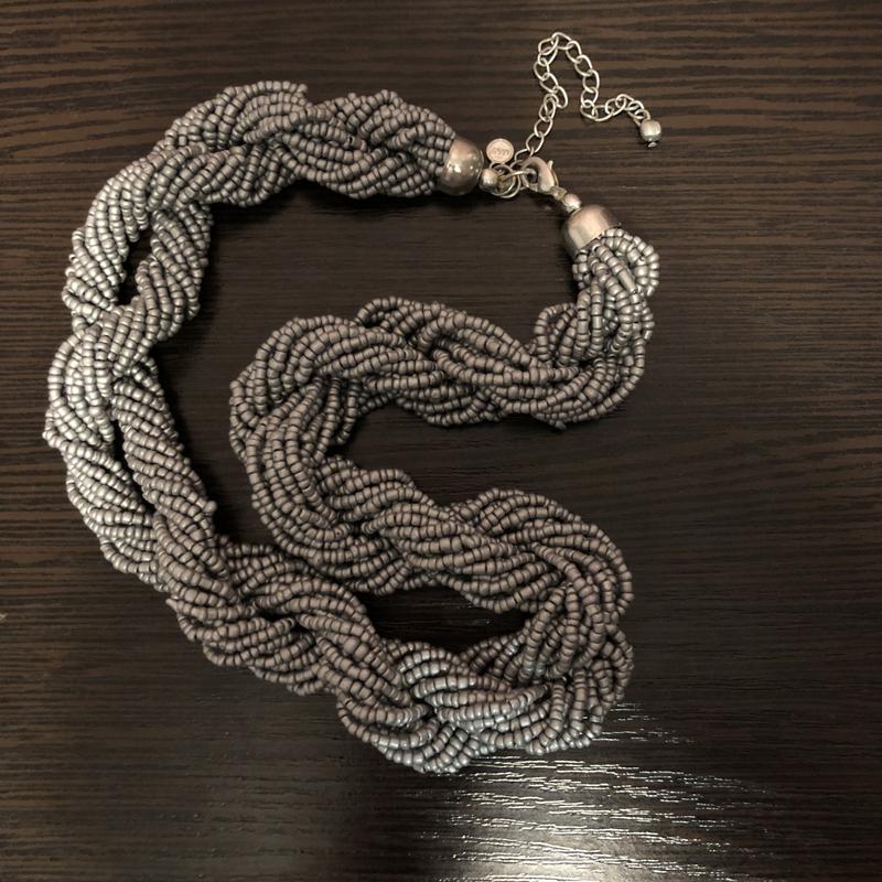 Массивное Украшению на шею из мелких бусин, серого цвета