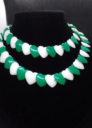 Ожерелье колье бусы из пластиковых бусин в форме сердца ♥ Полная длина 85 см, без застежки