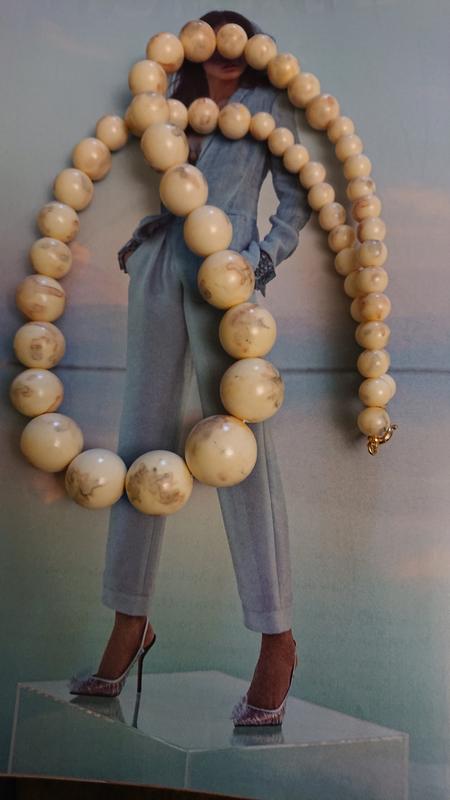 Классические пластиковые градуированные бусы в кремовом тоне. Длина 50 см. Крупная бучина в диаметре 2 см, мелкие 0,7 см.