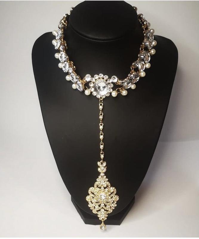 Изумительное Колье-чокер,французский винтаж , без маркировки, качественно сделано без нюансов, с блестящими кристаллами и жемчугом, Колье призвано покорять окружающих , Длинна колье 40 см , длинна висюльки 10 см . К нему есть серьги - спрашивайте . Смотрите в моем профиле и другие сумочки , а также украшения .
