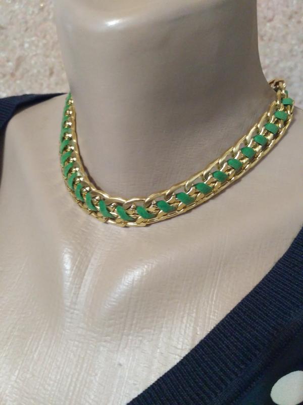 Чокер в позолоте с текстильной лентой.Замок работает, объем регулируется.