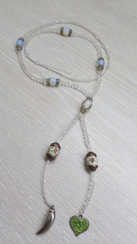 Украшение на шею, состав - стекло и лунный камень, метал и керамика.